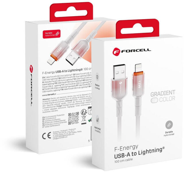 Forcell F-Energy USB A - Lightning kábel 2.4A 12W Gradient 1 m C353 fehér
