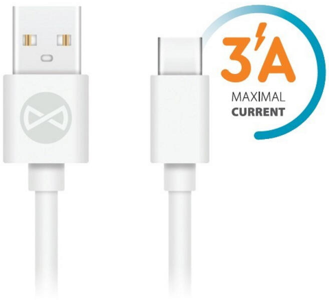 Forever USB-A/USB-C töltő és adatkábel, gyorstöltés funkció, 3A, 1m, fehér