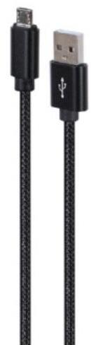 Pamutfonatos Micro-USB kábel fémcsatlakozókkal, 1,8 m, fekete színű