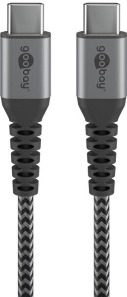 Elegáns és rendkívül robusztus csatlakozókábel USB-C csatlakozóval rendelkező eszközökhöz. Goobay USB-C kábel a szupergyors töltéshez, maximum 3A áramerősségig. USB-C kábel nagy sebességű adatátvitellel akár 480Mbit/s-ig. Fonott textilkábel optimalizált megcsavarodás elleni védelemmel,  kábeltörés elleni védelemmel, és több mint 10000 hajlítási ciklusra tervezték. A megerősített fémdugónak és a textilbevonatnak köszönhetően az USB-C - USB-C kábel rendkívül strapabíró és tartós. A Goobay USB-C adat és töltőkábel fonott textil bevonata kellemes tapintású, és kíméli az érzékeny felületeket. A robusztus, 2 méteres USB-C töltőkábel extra hosszú, így nagyobb távolságokat is áthidalhat, például munkahelyen vagy otthoni irodában. Az USB-C kábel csatlakoztatható okostelefonhoz, PC-hez, laptophoz, táblagéphez stb. (támogatja az Apple MacBook töltési funkcióját).