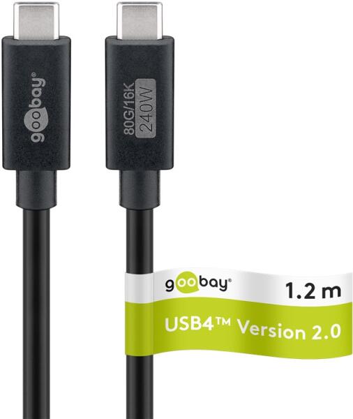 Goobay 74376 USB-C apa - USB-C apa 4.0 Adat és töltő kábel 240W 1.2m - Fekete (74376) (74376)