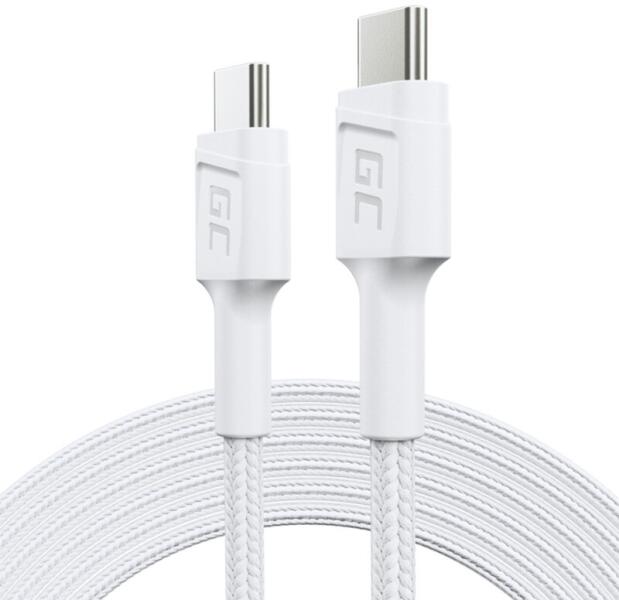 Green Cell Adatkábel Green Cell PowerStream, USB-C - USB-C, tápellátás 60 W, 200 cm, fehér