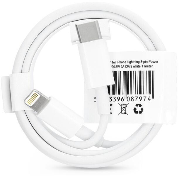 Haffner USB Type-C - Lightning adat- és töltőkábel 1 m-es vezetékkel - C973 PD 18W Type-C Cable for Lightning - 2A - fehér - ECO csomagolás (PT-6067) (PT-6067)