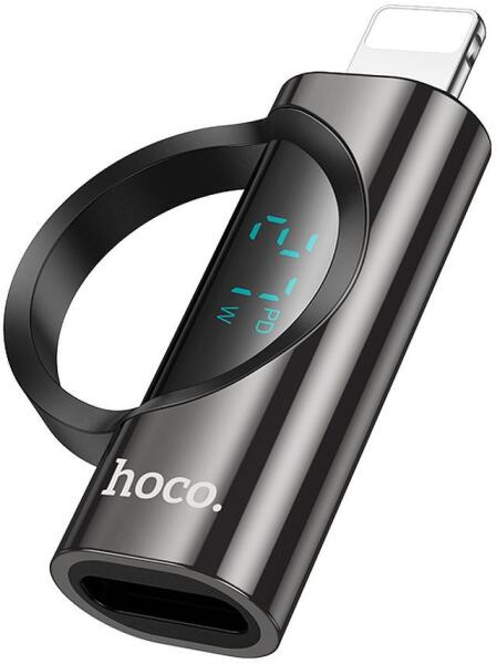 hoco. adapter Lightning (férfi) Type C (női) digitális kijelzővel 2, 4A 27W UA32B fekete