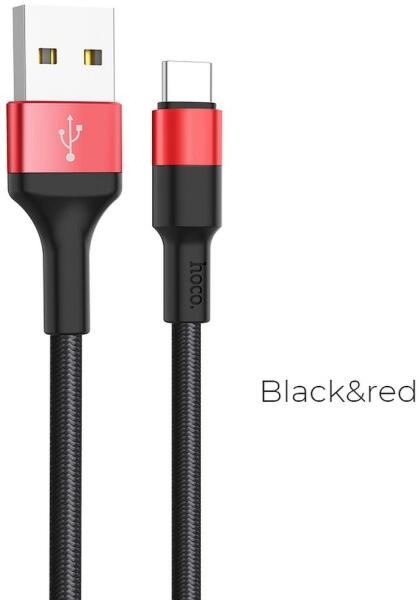 hoco. USB A - Type C 2A X26 kábel 1 m fekete-piros