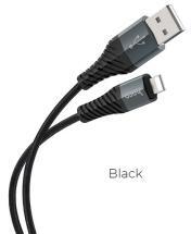 hoco. X38 adatkábel (USB - lightning, 2.4A, gyorstöltő, 100cm, törésgátló) FEKETE
