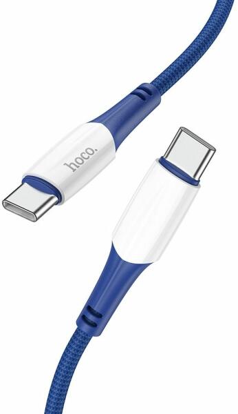 HOCO X70 - Type-C / Type-C (USB-C) kék/fehér szövet gyorstöltő kábel, 1m hosszú és 3A maximális áramerősséggel. Ez a kábel támogatja a gyorstöltési funkciót 60 W-ig, beleértve a Power Delivery-t, a Quick Charge-t és más protokollokat, hogy lerövidítse az eszközök töltési idejét (gyorstöltési funkcióval rendelkező töltőfej szükséges), és lehetővé teszi az adatátvitelt. Az 1 m hosszú kábel kényelmes használatot biztosít töltés közben. Erős nylon fonatú kialakításának köszönhetően ellenáll a sérüléseknek és a töréseknek.