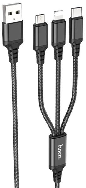 hoco. X76 USB Type-A apa - USB Type-C / Micro USB Type-B / Lightning apa iPhone Töltőkábel - Fekete (1m) (X76_B) (X76_B) - emag