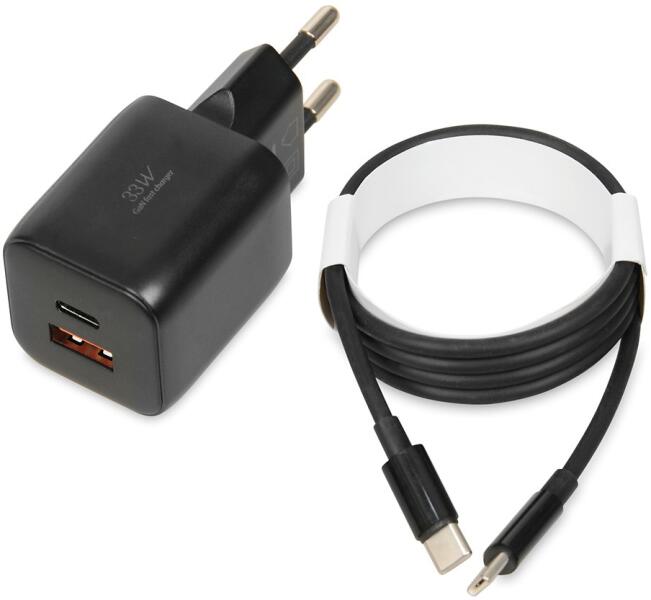 iBOX C-42 USB-A / USB-C Hálózati Gyorstöltő Adapter 33 W + USB Type-C Töltőkábel - Fekete