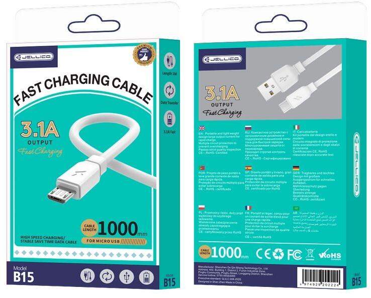 Jellico kábel B15 Mikro 3.1A 1M Fehér