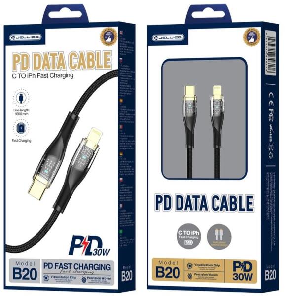 Jellico kábel B20 USB-C - Lightning PD 30W 1M Fekete