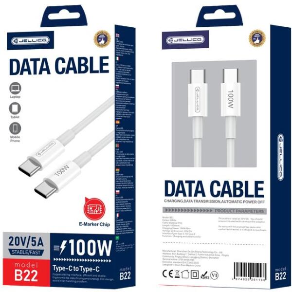 Jellico kábel B22 USB-C - USB-C PD 100W 1M fehér