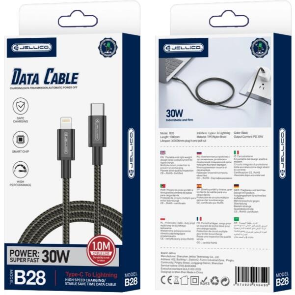 A JELLICO B28 USB-C - Lightning kábel a modern felhasználók igényeire szabva készült, akik nem elégszenek meg kevesebbel, mint a villámgyors töltéssel és az adatátviteli sebességgel, mindezt párosítva a kimagasló tartóssággal és megbízhatósággal.