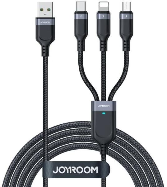 JOYROOM 3 az 1-ben USB - Lightning / Type-C / Micro USB Kábel Multi-Color Series A18, fekete