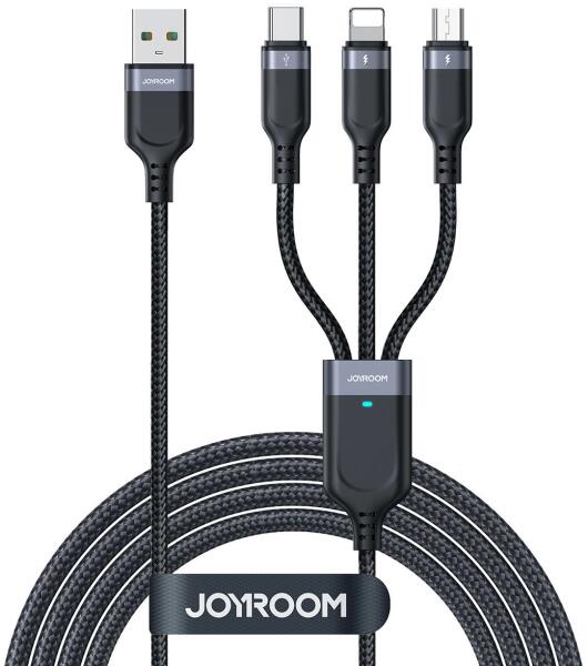 JOYROOM Multi-Use Series S-A18 3 az 1-ben USB-A - Lightning / USB-C / micro USB kábel 0, 3m - fekete