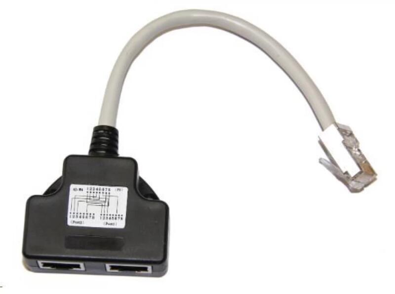 Fekete színű, 10cm hosszú RJ-45 - RJ-45 Elosztó kábel.