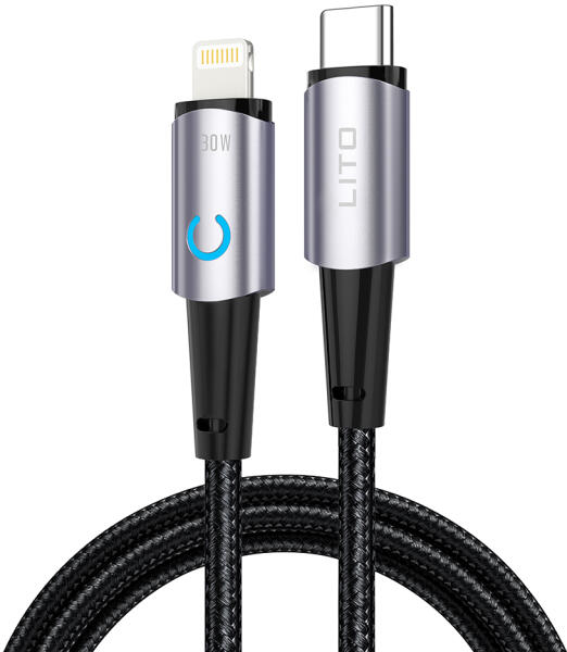 Lito - Adatkábel (LD10) - Type-C -ről Lightning gyors töltés 30W, LED-del, 1, 2m - Fekete
