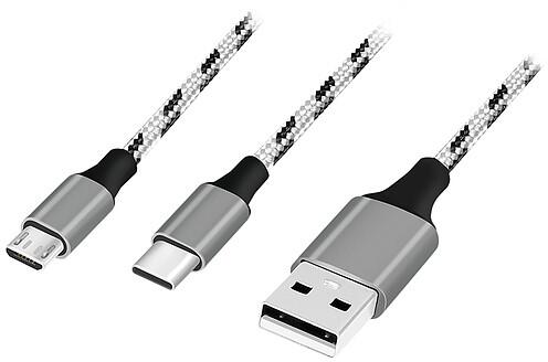 LogiLink USB 2.0 kábel, USB-A/M - Micro-USB + USB-C, fehér/fekete, 1, 2 m (CU0202)