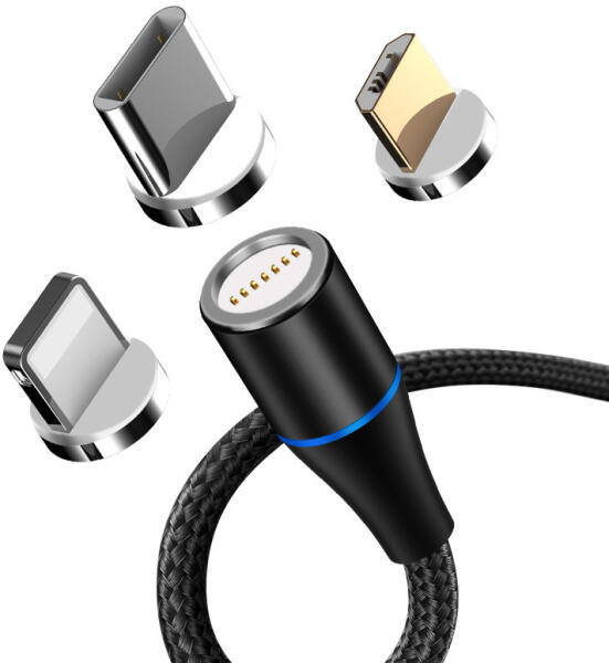 Maxlife Mágneses Kábel MXUC-03 USB Lightning + USB-C + MicroUSB 1, 0 M, QC 3.0