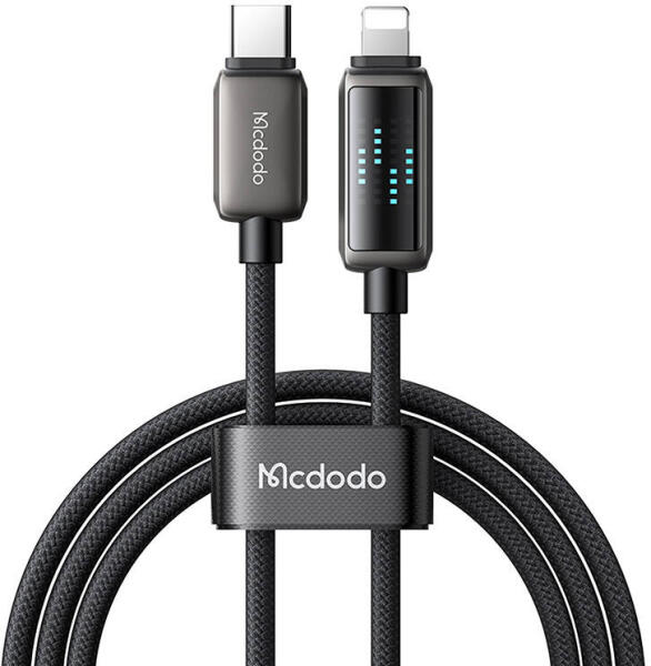 Név: Mcdodo CA-2630 USB-C - Lightning kábel, 36W, LED kijelző, 1,2m Gyártó: Mcdodo Modell: CA - 2630 Interfész: USB-C - Lightning Szín: Fekete Anyag: Cinkötvözet / Nejlon Hosszúság: 1,2m Áramerősség: 3A