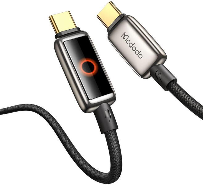 Mcdodo USB-C-USB-C kábel CA-6680 1.2m Az USB-C-ről USB-C-re Mcdodo CA-6680 kábel kiváló választás azok számára, akiknek megbízható és tartós kábelre van szükségük a mindennapi használathoz. Nagy, 100 wattos teljesítményének köszönhetően alkalmas lesz okostelefonok és táblagépek, valamint laptopok vagy hordozható játékkonzolok töltésére. Az alkalmazott technológiák és az E-Marker chip gondoskodik az akkumulátor biztonságáról és védi azt a túltöltéstől, a robusztus kialakítás pedig hosszú élettartamot biztosít. Szupergyors töltés és adatátvitel Az 5 amperes, akár 100 wattos teljesítmény és a PD-technológia támogatása lehetővé teszi az eszközök rendkívül gyors töltését - a kiválasztott MacBook Pro modellek például kevesebb mint két óra alatt töltődnek fel, az iPhone 16 pedig körülbelül 30 perc alatt éri el az akkumulátor 60%-os töltöttségi szintjét. Emellett a kábel akár 480 Mbps adatátviteli sebességet is támogat, ami lehetővé teszi a fájlok hatékony átvitelét. Tartós konstrukció és intelligens LED-kijelző A kábelt ónozott rézkábel és nejlonfonat jellemzi, így ellenáll a hajlításnak és a sérüléseknek. Az aranyozott csatlakozók stabil kapcsolatot biztosítanak, a beépített fényjelző pedig színváltással tájékoztat a töltés állapotáról. A terméket széles körű kompatibilitása is megkülönbözteti - tökéletesen működik laptopokkal, okostelefonokkal, fejhallgatókkal, hordozható konzolokkal vagy CarPlay rendszerrel. Gyártó McdodoModell CA-6680Interfész USB-C USB-C-reAnyag Cinkötvözet, nejlonHosszúság 1,2 mÁramerősség 5A (max. 100 W)Átviteli sebesség Akár 480 Mbps