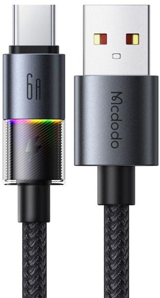 Mcdodo Data Cable (CA-8180) 7 színes világítással, USB-A-ról USB-C-re, 6A, 1.2m - Fekete Mcdodo