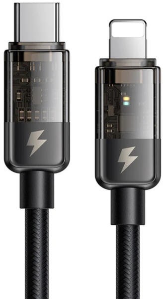Mcdodo Type-C to Lightning Mcdodo Data Cable (CA-3160), 36W, Átlátszó kialakítás, Automatikus kikapcsolás, 1.2m - Fekete