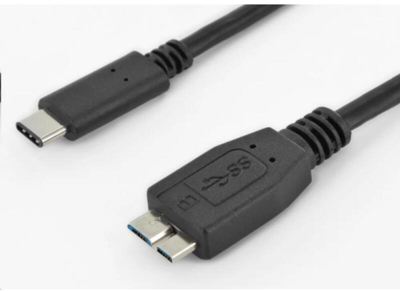 Fekete színű, 60cm hosszú USB 3.0 Type C - USB 3.0 Micro-B Átalakító kábel.