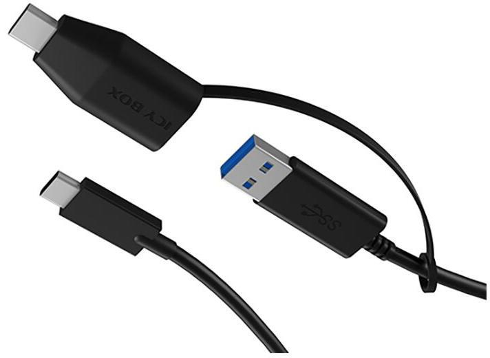 RaidSonic Icy Box IB-CB033 USB Type-C Apa - USB Type-C / USB-A Apa 3.2 Adat és Töltő Kábel - 0.35 m, Fekete (IB-CB033)