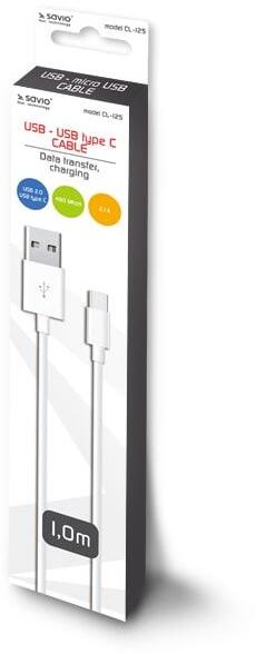 SAVIO CL-125 USB kábel USB 2.0 1 M USB A USB C Fehér (CL-125)