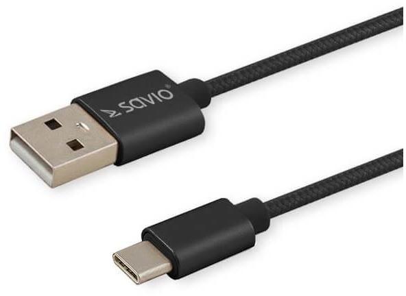 SAVIO USB-C apa - USB 2.0-A apa Adat- és töltőkábel 2m - Fekete (CL-129) (CL-129)