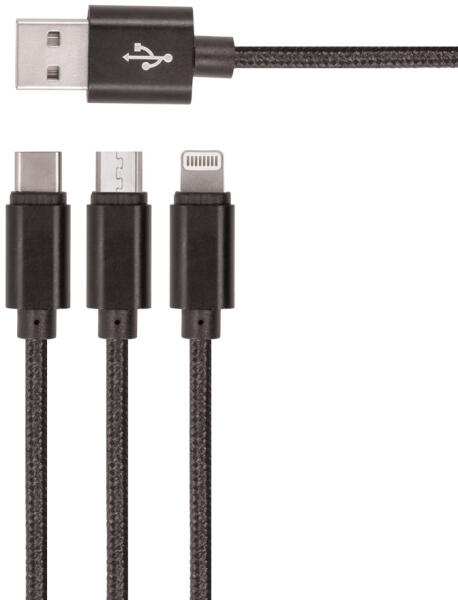 Setty KN3W1-01 USB-A - Type-C/Lightning/micro USB kábel 2A 1m - fekete