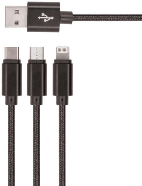 Setty USB Cable 3in1 Micro-USB, Type-C, Lightning kábel, 2A, 1m, fekete