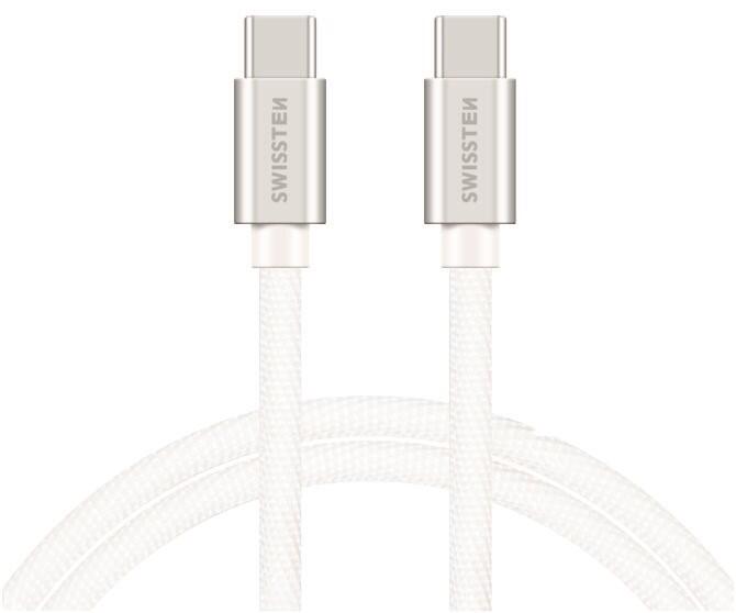 SWISSTEN 71528202 Textile USB Type-C apa - USB Type-C apa Adat és töltő kábel - Fehér/Ezüst (2m) (71528202) (71528202)