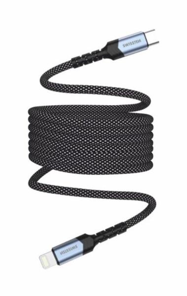 SWISSTEN Adatkábel Swissten USB-C / Lightning 1 m mágneses öntekercselő fekete