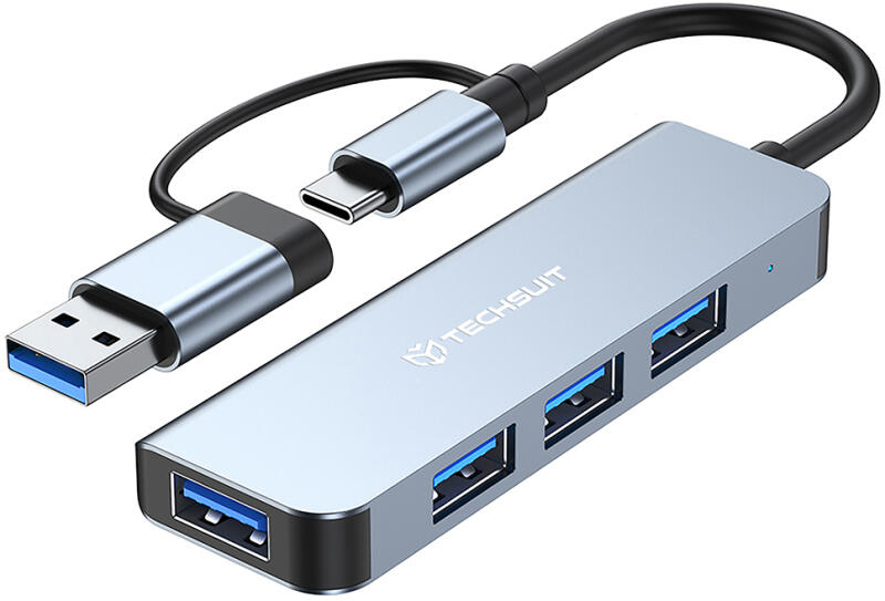 Techsuit - DataBridge 4 az 1-ben dokkolóállomás (H8) - USB, Type-C csatlakozóból USB 3.0, 3x USB 2.0 - Szürke