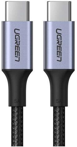 UGREEN adatkábel, type-c - type-c, 5a, pd gyorstöltő, 100w, 200cm, cipőfűző, fekete (US316_200)
