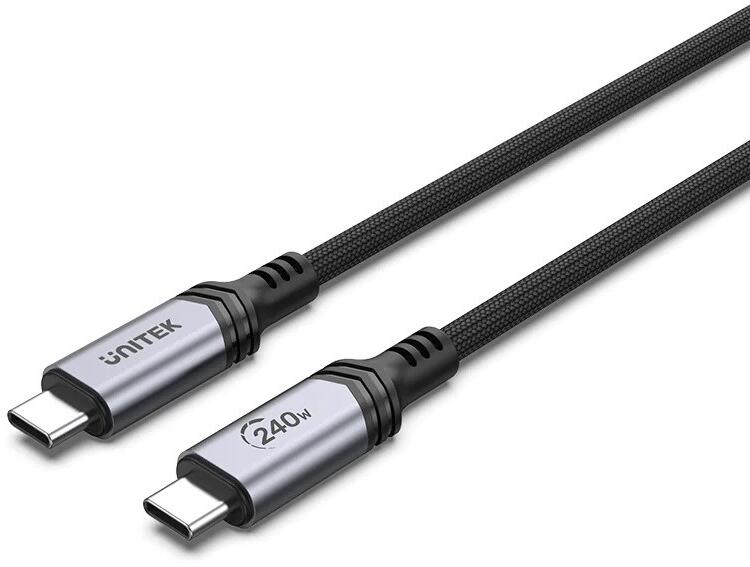 Unitek USB-C apa - USB-C apa Adat- és töltőkábel 240W 2m - Fekete (C14110GY-2M) (C14110GY-2M)