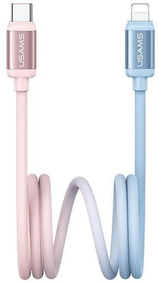 USAMS bicolor adatkábel, type-c - lightning, 30w, pd gyorstöltő, 120cm, kék/rózsaszín (SJ757USB03)