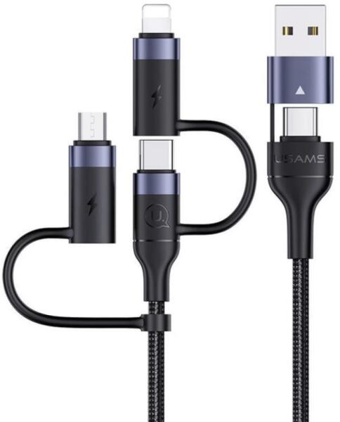 USAMS USB 2.0 + USB 2.0 Type C Lightning + Micro USB + USB Type C Átalakító Fekete 1.2m SJ547USB01 (SJ547USB01)