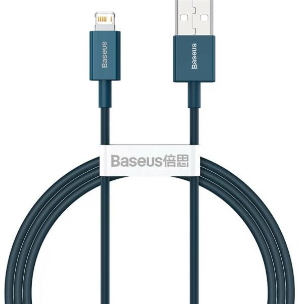 USB töltő- és adatkábel, Lightning, 100 cm, 2400 mA, törésgátlóval, gyorstöltés, PD, Baseus Superior, CALYS-A03, kék