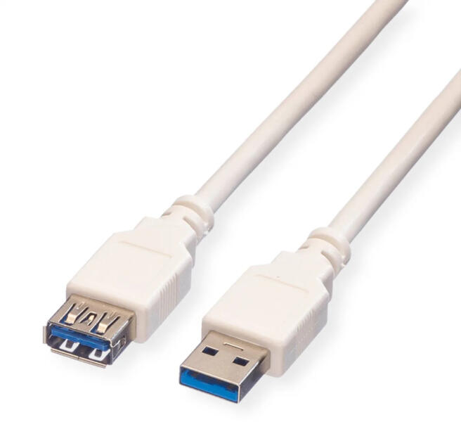 Fehér 3 méter hosszú USB 3.0 hosszabbító kábel.
