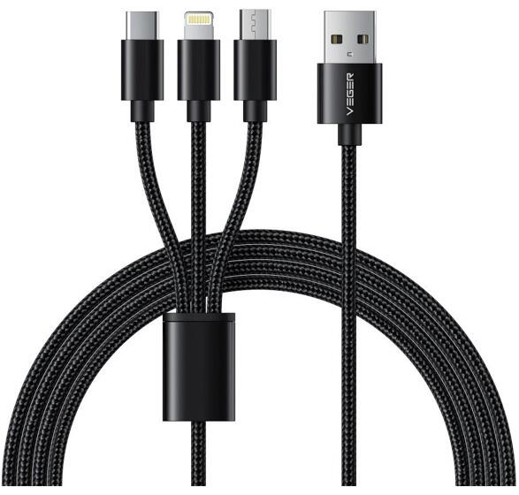 VEGER V303 3in1 Type-C-Lightning-Micro USB 1.5m Fekete Adatkábel