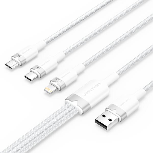 Vention USB 2.0 A Male to 3-in-1 USB-C & Lightning & Micro-B Male 3A Cable 1.5M White Aluminum Alloy (CTPWG)