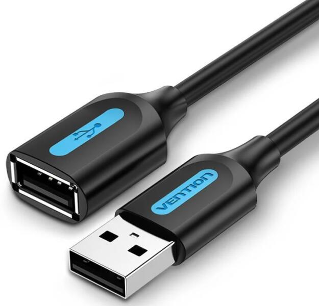 Vention USB-A 2.0/M - USB-A 2.0/F, (hosszabbító, PVC fekete), 1m, kábel