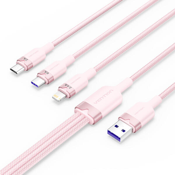 Vention USB-A 2.0/M -> USB-C/Lightning/Micro USB-B, 1, 5m, (pink, 6A, 3in1), kábel (CTRPG) - onlinepatron