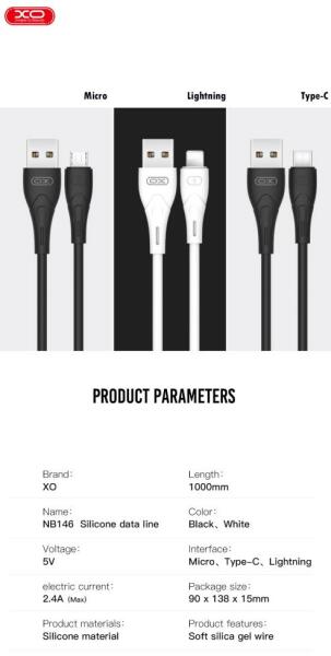 XO NB146 USB-C adatkábel (Fekete)