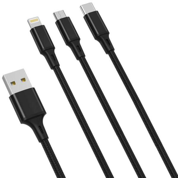 XO NB173 USB-A - Lightning / USB C / Micro kábel fekete 1.2m (NB173) (NB173)