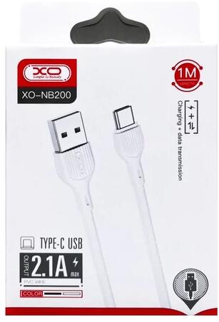 XO NB200 USB kábel, USB-A - USB-C (1 méter 2, 1A), fehér (Gyorstöltő)