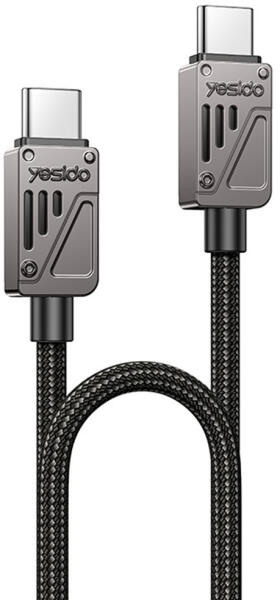 Yesido - Adatkábel (CA196) - Type-C to Type-C, Gyors töltés, 480Mbps, PD60W, CarPlay kompatibilis, cink ötvözet, 1.2m - Fekete